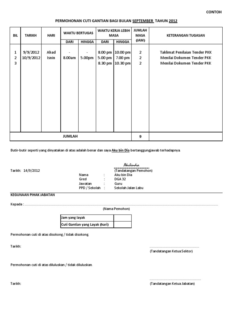 Borang ini diberi percuma borang permohonan wakil pengedar gas petronas perhatian : Muat turun borang bahagian pasca perkhidmatan. Surat yang resmi biasanya ditujukan kepada suatu instansi. Permohonan cuti gantian untuk kerja lebih masa seperti yang dijelaskan di atas * diluluskan/ tidak diluluskan. Savesave borang cuti gantian for later.