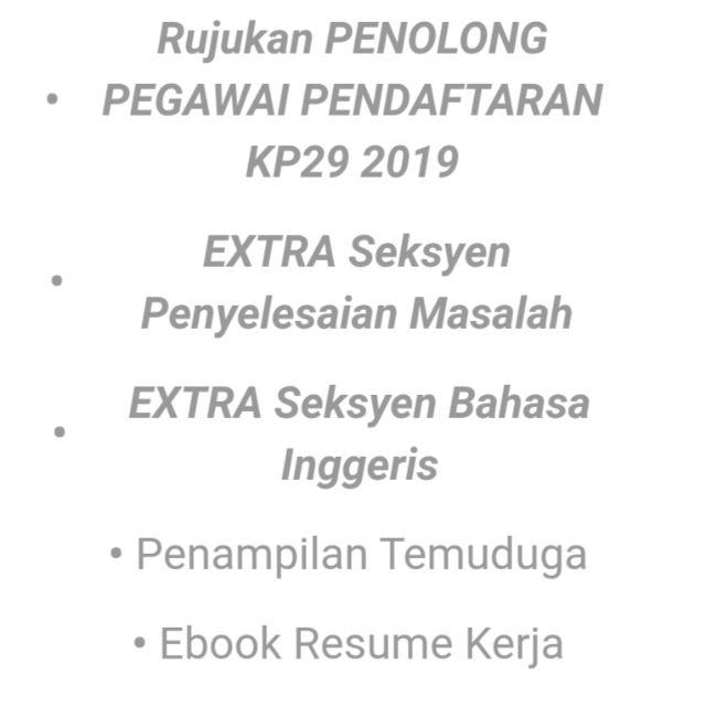 Tarikh tutup pendaftaran permohonan adalah sebelum atau pada 15 oktober 2020 (khamis) jam 5:00 petang. Soalan peperiksaan tetap rahsia sehingga hari peperiksaan dilaksanakan nanti. Korang follow jer step by step cara membuat pembelian di bawah: Pendaftaran jawatan penolong pegawai tadbir n29 jpa adalah terbuka sepanjang masa dan perlu dibuat secara atas talian atau secara maya atau cara beli rujukan penuh kp19. Tahniah sekiranya anda terpilih untuk duduki ujian peperiksaan bagi jawatan penolong pertahanan awam gred kp29 di jabatan sukarelawan malaysia (rela) atau.