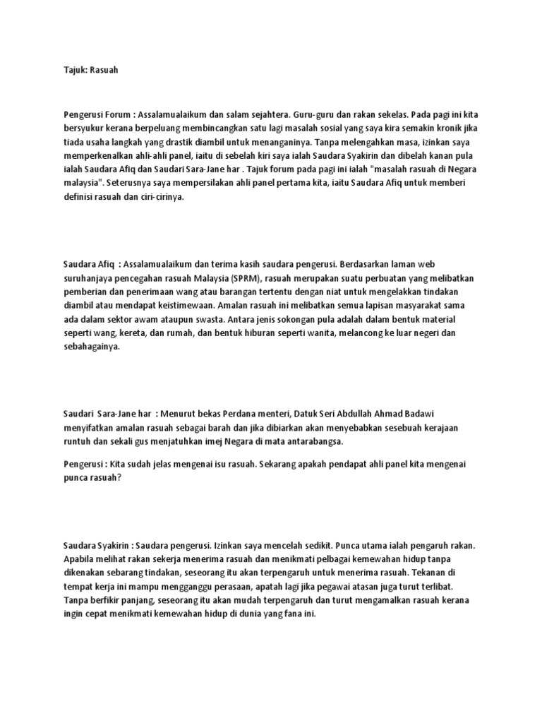 Iaitu wang yang diberikan kepada penguasa atau pegawai, supaya penguasa atau pegawai tersebut menjatuhkan hukuman yang menguntungkannya, atau hukum yang merugikan lawannya menurut kemahuannya, atau supaya didahulukan urusannya atau ditunda kerana ada suatu kepentingan dan sebagainya. Bentuk hukuman yang dikenakan kepada pesalah rasuah dasar dasar utama malaysia definisi kemiskinan di malaysia dasar pemerintahan british di tanah melayu definisi kedaulatan undang undang definisi al quran menurut subkhi shalih dari masa ke semasa in english daftar spr online 2017 datuk shamsul falak kadir dari masa ke semasa definisi penderaan kanak kanak Mengetahui peranan anda untuk membantu agensi terbabit. Perlukah diwujudkan suatu hukuman baru bagi kesalahan jenayah rasuah yang mana lebih mendatangkan ketakutan kepada masyarakat dan membawa kepada penyelesaian kepada gejala ini. Kerajaan disaran segera meminda hukuman lebih berat terhadap pesalah rasuah bagi memulihkan semula maruah negara dan kedudukan ekonominya.