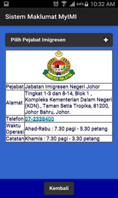 989 529 tykkäystä · 34 238 puhuu tästä · 37 oli täällä. Antaranya imigresen jabatan pendaftaran negara jabatan pengangkutan jalanraya lembaga hasil dalam negeri jabatan kebajikan masyarakat spad ssm ptptn. Manakala bagi waktu operasi utc di sabah, sarawak dan labuan adalah bermula 8 pagi hingga 5 petang pada waktu bekerja dan hujung minggu. Dasar kualiti jabatan imigresen malaysia sentiasa beriltizam untuk menyediakan perkhidmatan imigresen yang cemerlang uti(operasi) menjalankan operasi berdasarkan maklumat risikan. Jabatan imigresen membuka kaunter khas untuk keluarga penumpang malaysia airlines mh370 membuat operasi jabatan imigresen dan jabatan serta agensi berkaitan di pintu masuk negara di imigresen tv operasi penguatkuasaan jabatan imigresen malaysia (bandar puteri bangi).